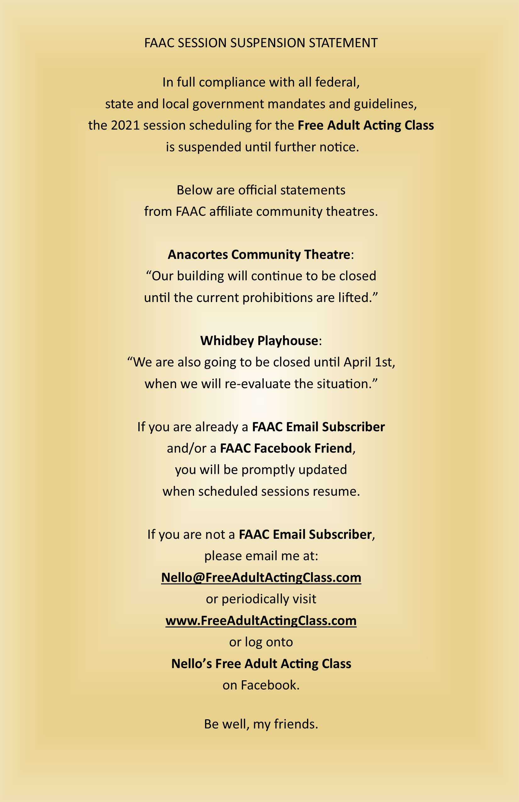"Thank you all for another great class! This was the first time we've held FAAC on the ACT Main Stage! Your readings, performances and improvisations were excellent!"